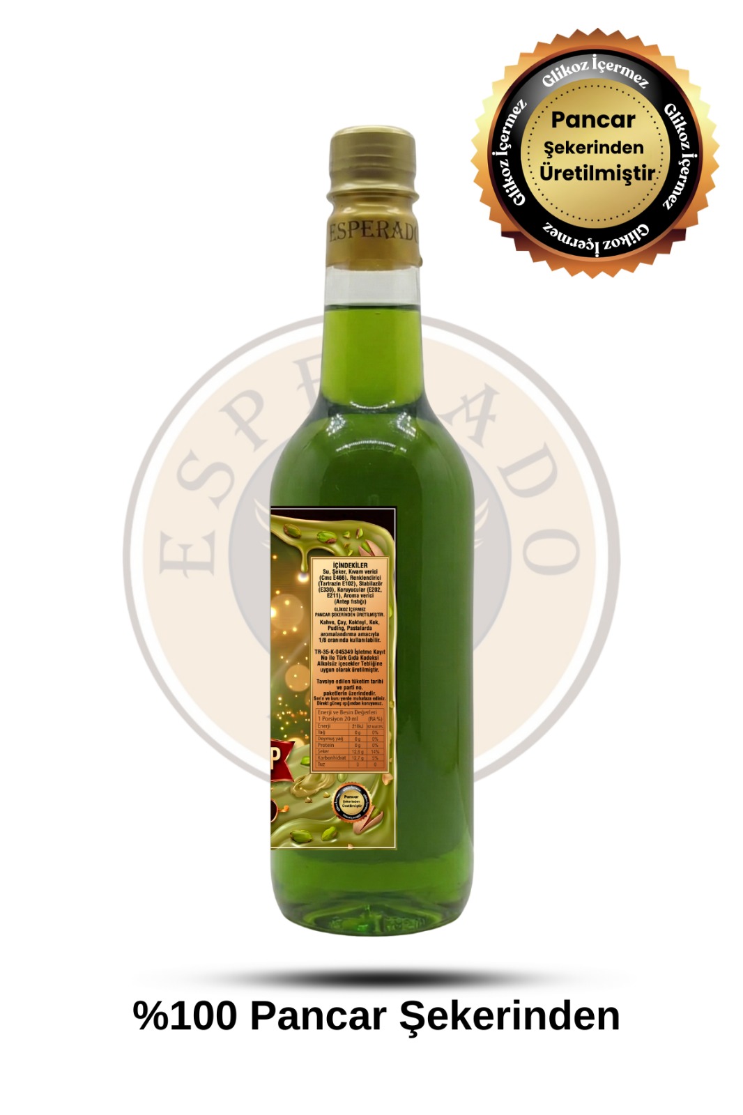 - ESPERADO PREMIUM kahve & kokteyl şurubu Antep Fıstığı aromalı 750 ml * % 100 şekerden üretilmiştir.