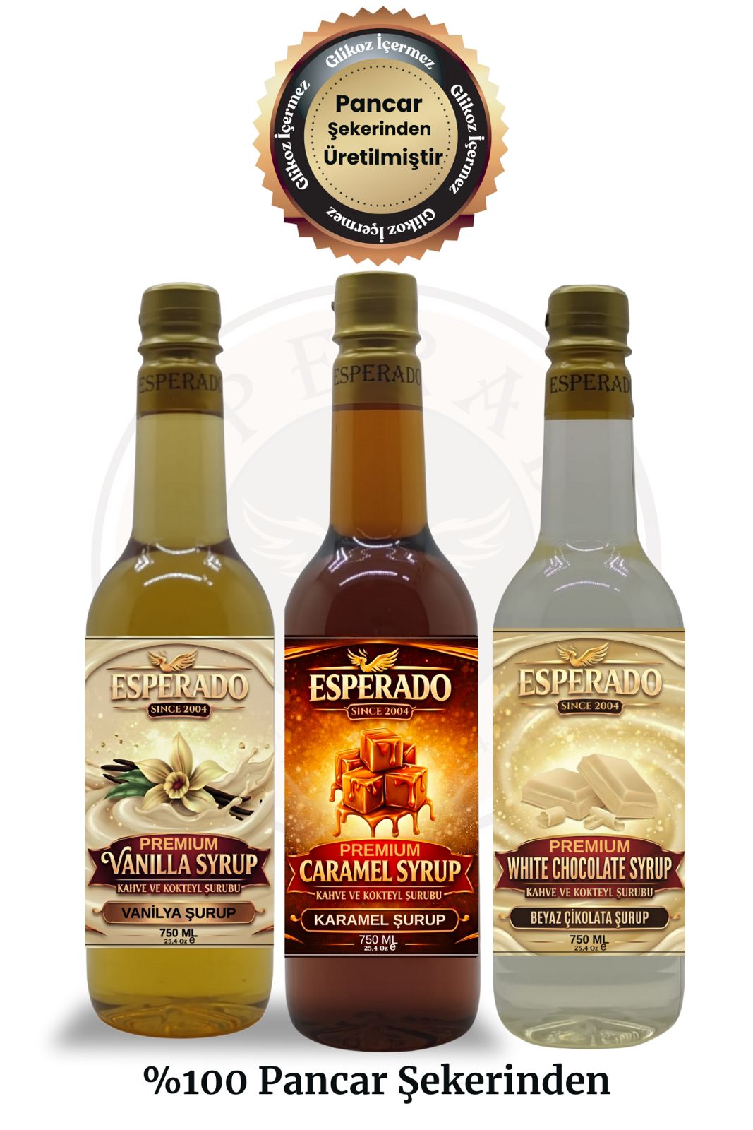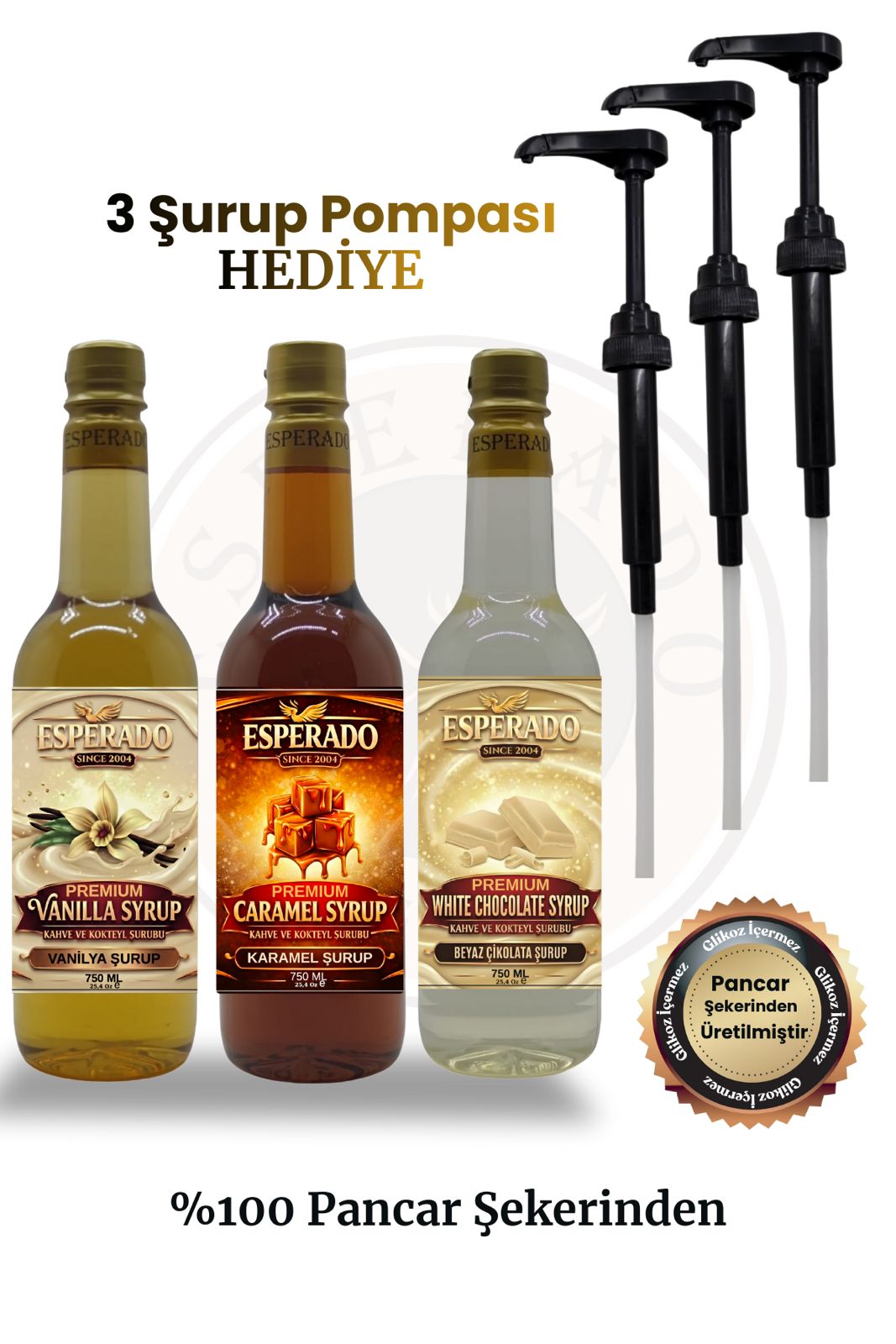 - ESPERADO PREMIUM kahve & kokteyl şurubu vanilya – Beyaz çikolata – Karamel aromalı 750 ml x 3 ad.