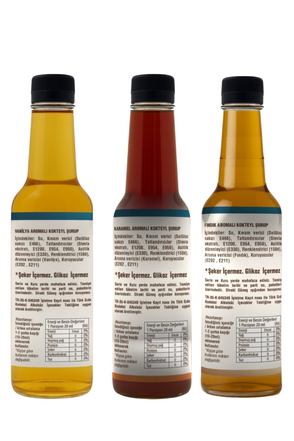 - * şeker içermez kullanım alanları : * kahvelerde * milkshake lerde * çaylar da * sıcak çikolata da * frappe de * soğuk kahvelerde * sıcak ve soğuk kokteylerde * tatlılarda * şeker ve glukoz içermez*