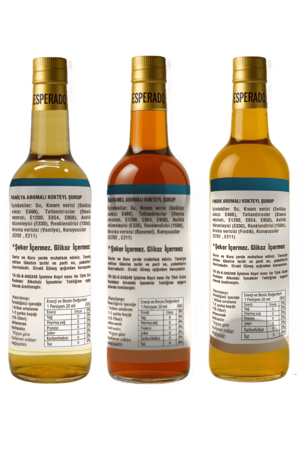 - Esperado – 3 lü kahve şurup seti – Vanilya * fındık * karamel -Şekersiz – Zero – 3 x 750 ml şekersiz – Kahve & kokteyl şurubu ıçindekiler :Su.Kıvam verici (selüloz sakızı,polidekstroz),tatlandırıcılar (stevia ekstratı,,sodyum sakkarin ,asesulfam k), renklendirici (karamel 150d),doğal aroma vericisi (karamel),koruyucu (sodyum benzoat,potasyum sorbat) aroma ve renklendiriciler ürün çeşidine göre değişiklik gösterir.