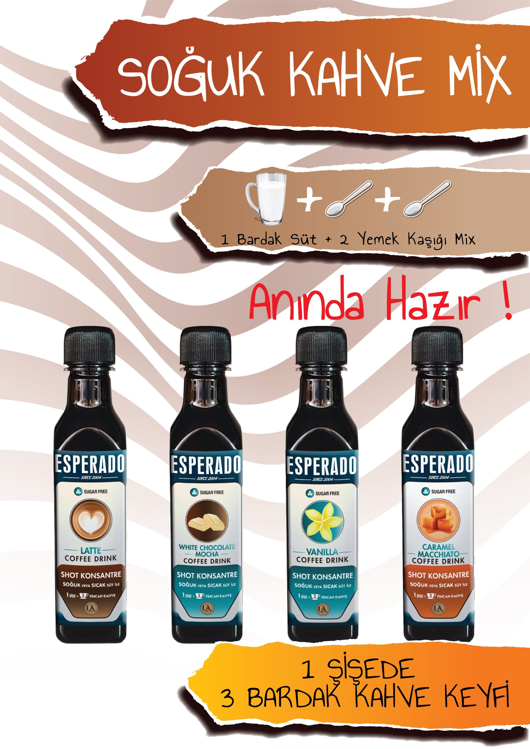 ESPERADO VANİLYA *KARAMEL*LATTE*WHİTE CHOCOLATE AROMALI SOĞUK KAHVE MİX 4 LÜ SET 60 ML X 4 ADET