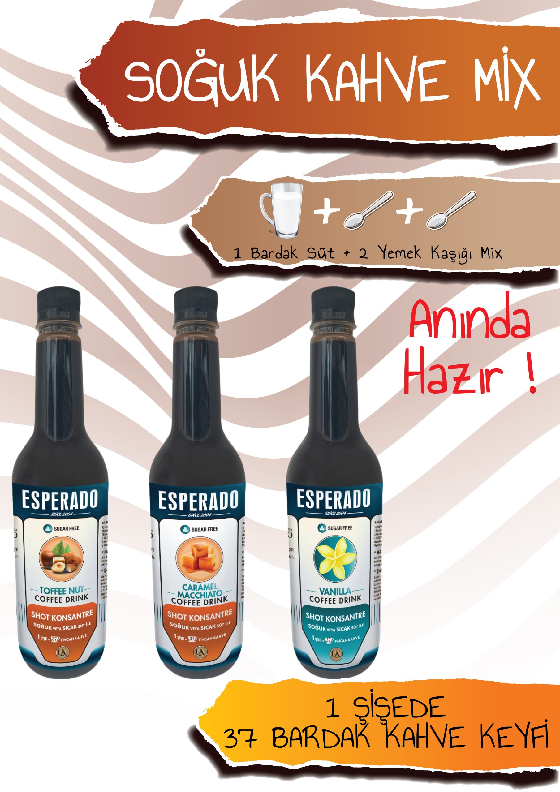 ESPERADO VANİLYA*KARAMEL*TOFFE NUT AROMALI SOĞUK KAHVE MİX 3 LÜ SET 750 ML